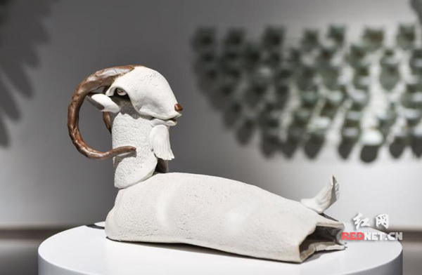 他的瓷雕动物,在似与不似之间,作品首先是写实的,但同时又充满了艺术想像。他的多款瓷雕动物作品都在名家邀请展上展出,比如《雪豹》、《羚羊》、《母子羊》等,他的瓷雕动物,在似与不似之间,写实又充满了艺术想象,值得好好欣赏和品味。还有《落叶归根》、