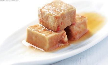 我们会看到,腐乳表面附有一层红色物质,这是红曲菌产生的纯天然色素,对人体十分安全,且是天然的血脂清道夫。腐乳含有丰富的大豆异黄酮,能有效地预防和抑制白血病,具有抗肿瘤效应。