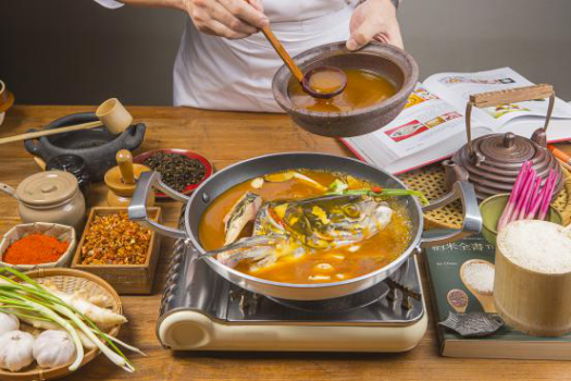 湘西大山钟灵俊秀,大自然给予了土家族人丰富的馈赠,逢年过节,鱼是不可或缺的硬菜之一。“吃饭皇帝大”的这道“大王鱼头”选用有机新鲜大鱼头,放入土家特制酸汤炖至鲜香,酸酸的汤汁泡上一碗香香的白米饭,搭配着肥美鲜香的鱼头下肚,美的就像土皇帝。