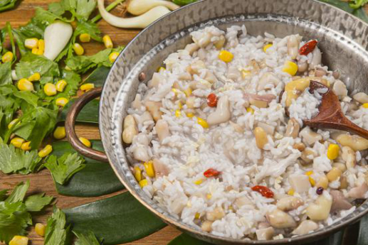 据史书记载,公元1786年春,乾隆微服私访,一干人等浩浩荡荡视察沅州(今湘西),当地乡民进贡沅州优质香米、湘西野藕和慈姑等水陆特产以谢皇恩。乾隆有感于乡民社稷的淳朴与厚爱,特命随行御厨以高汤讲所有食材混合煨至软糯汁浓,与乡民一同享用,民间因此得名“皇帝泡饭”。