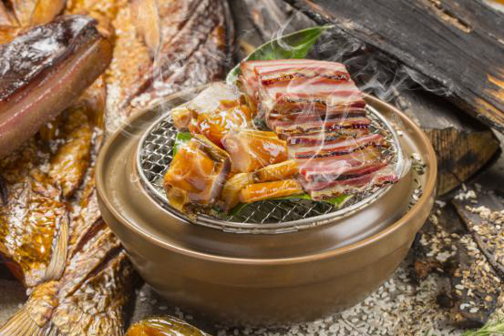 湘西腊味冠绝天下,而土家族人又是其中的绝顶高手,每到冬至,土家族的阿妈就会将新鲜的大鱼大肉洗净、抹上盐巴,置于灶堂的吊锅之上,等待着岁月沉淀出绝美的风味。