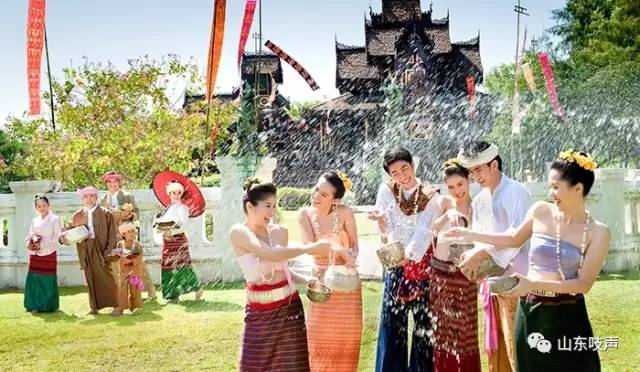 泰国传统的新年元旦,即“宋干节”。“宋干”是梵语的译音,也叫“泼水节”,节日里,人们相互洒水,喜笑颜开地祝长辈健康长寿,祝亲朋新年幸运。未婚的青年男女,则用泼水来表示彼此之间的爱慕之情。泰国人在新年第一天都在窗台、门口端放一盆清水,祈求新年如意,风调雨顺。