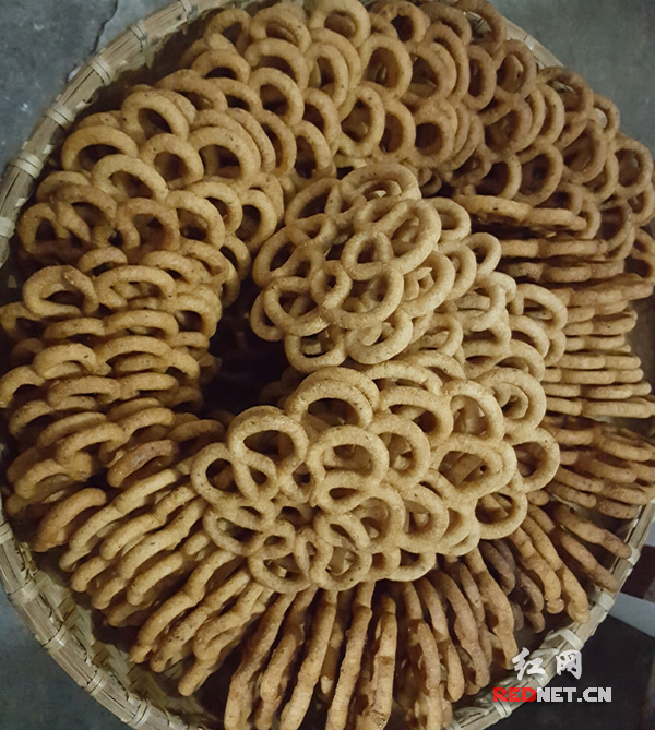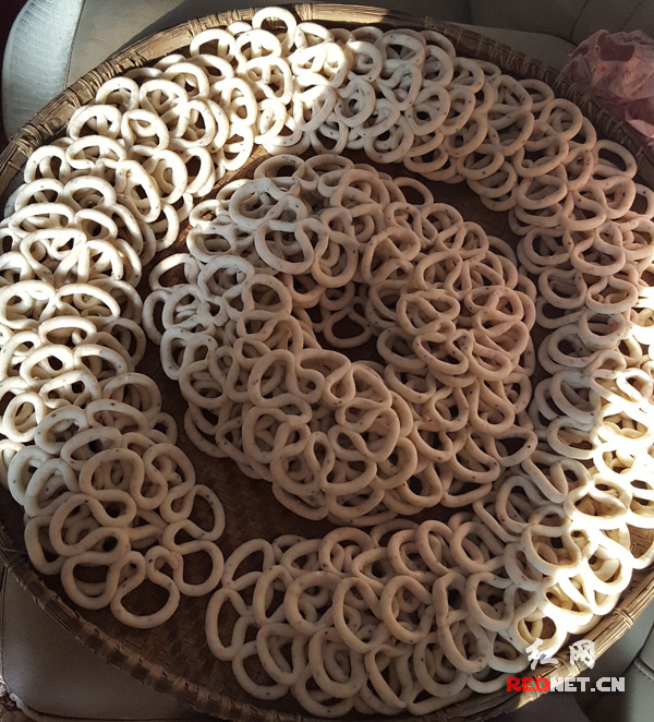 除了“告仔”,“团馓”也是资兴农村过年摆盘的必备“年味”。