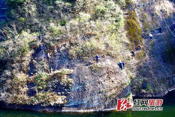 游客在崖壁上“起舞”。