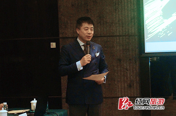 华谊兄弟电影小镇总经理刘凯推介项目内容。