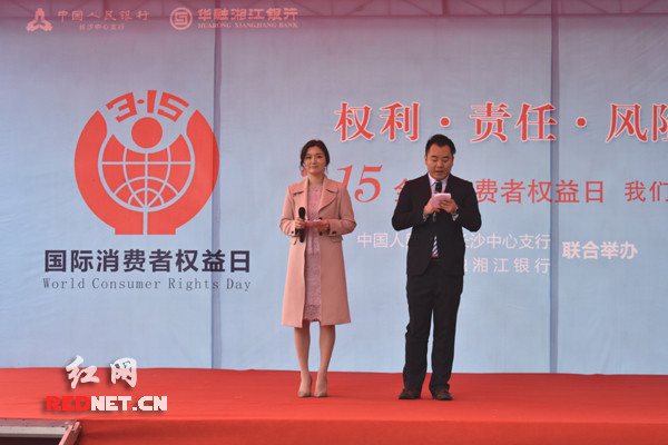3月15日,中国人民银行长沙中心支行联合华融湘江银行在长沙开展“金融消费者权益日”宣传活动。