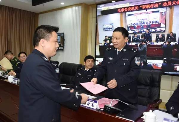 各县市区公安局局长、局属各部门负责人向谭学军同志递交了“狂飙行动”责任状。