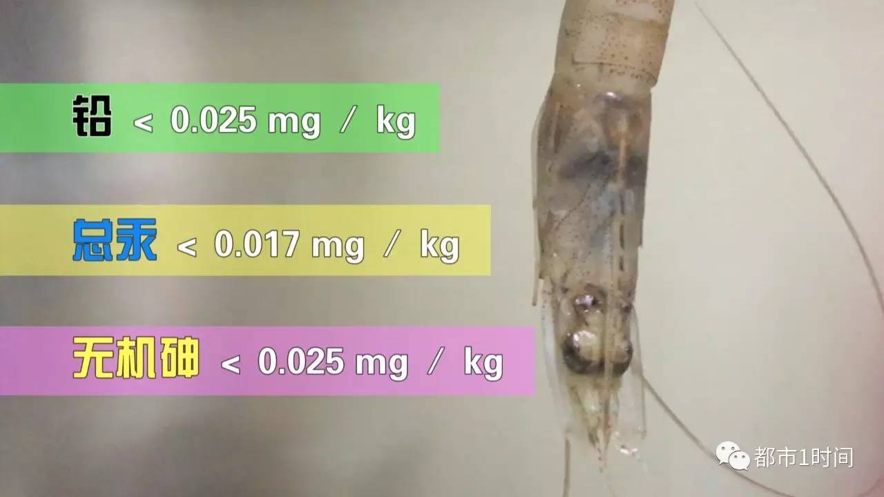 根据国家标准,水产品中,铅、汞、砷的限量都不得超过每千克0.5毫克,那么这些虾头变黑的虾子,它的重金属含量是否超标了呢?经过检测,这些虾子中,虾头部分铅含量为每千克0.08毫克,总汞含量小于每千克0.02毫克,无机砷含量小于每千克0.03毫克。虾身可食用部分铅含量为每千克0.025毫克,总汞含量小于每千克0.017毫克,无机砷含量小于每千克0.025毫克。