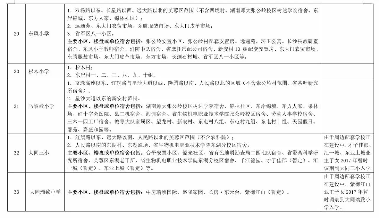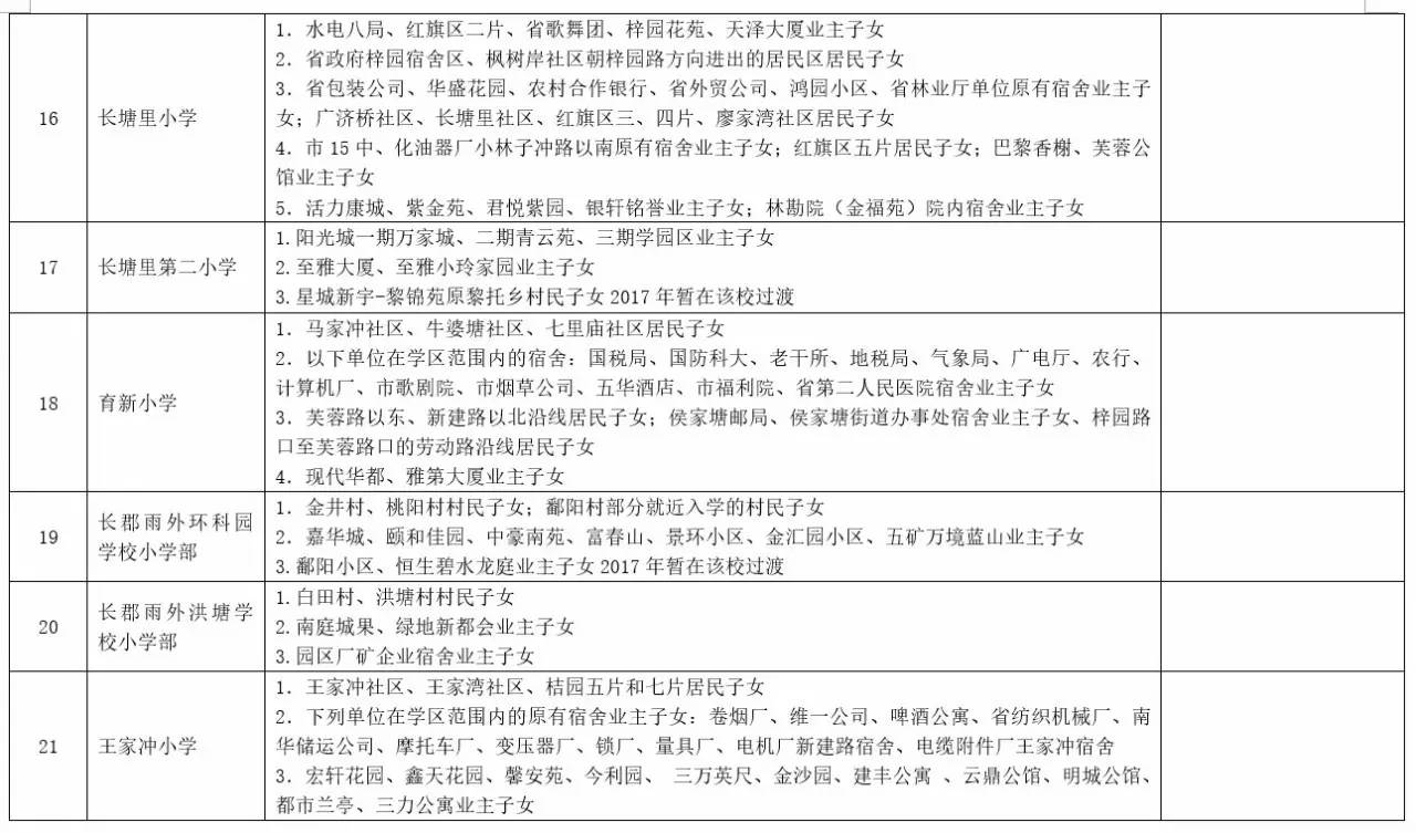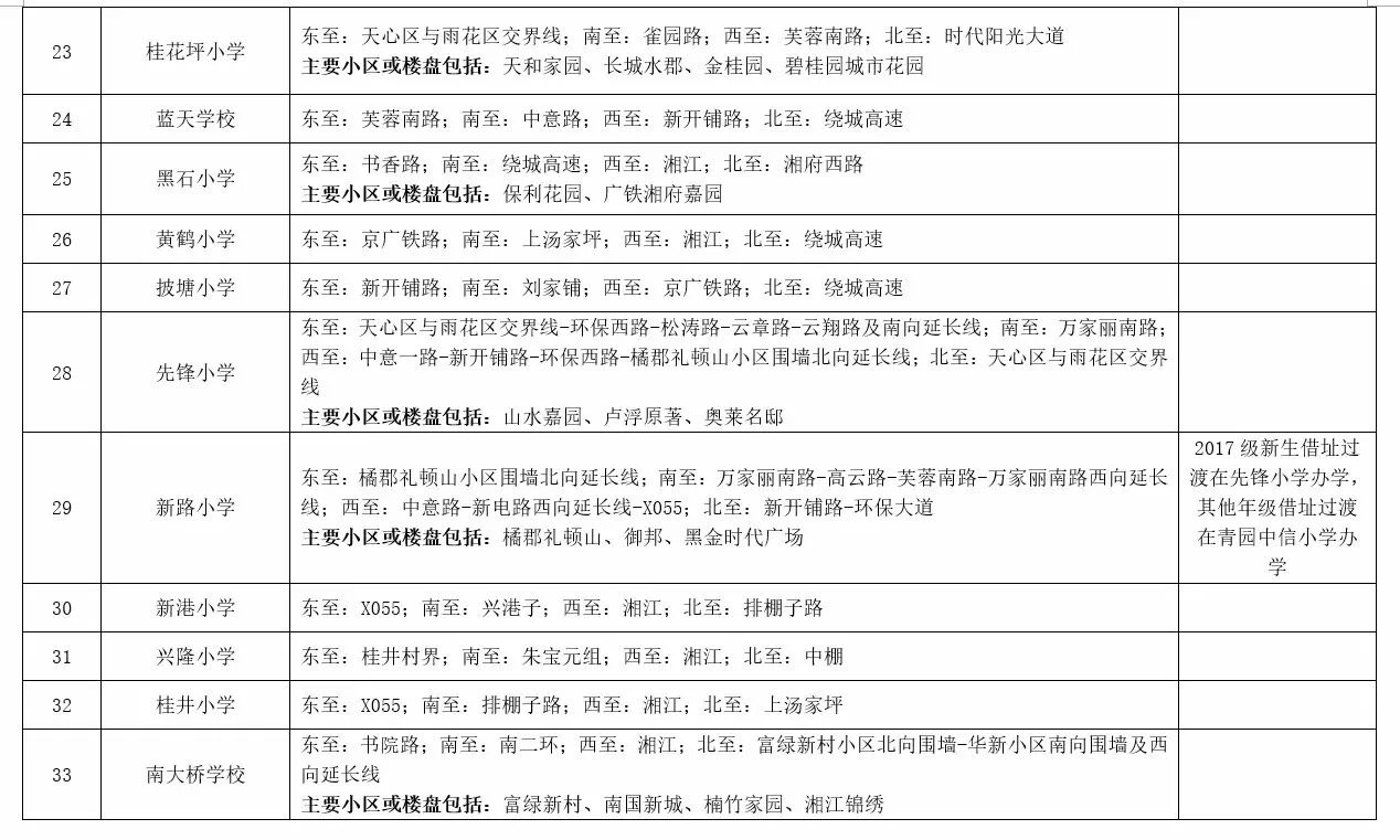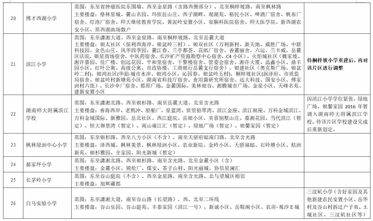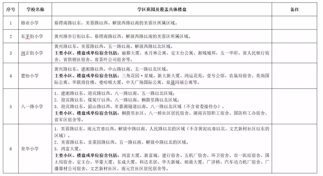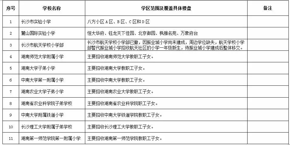 关于2017年长沙城区公办小学学区范围及覆盖具体楼盘信息的公告