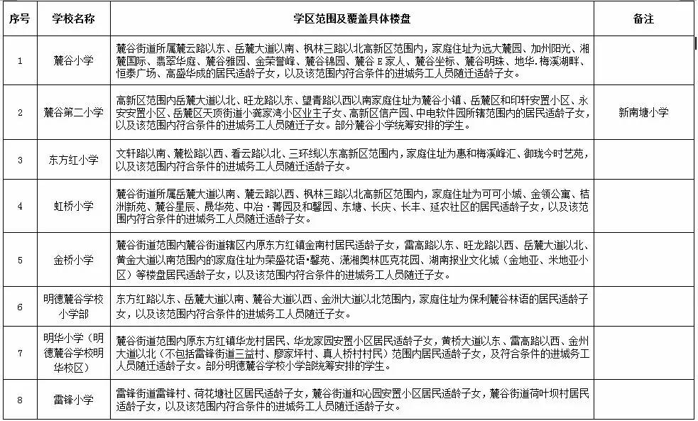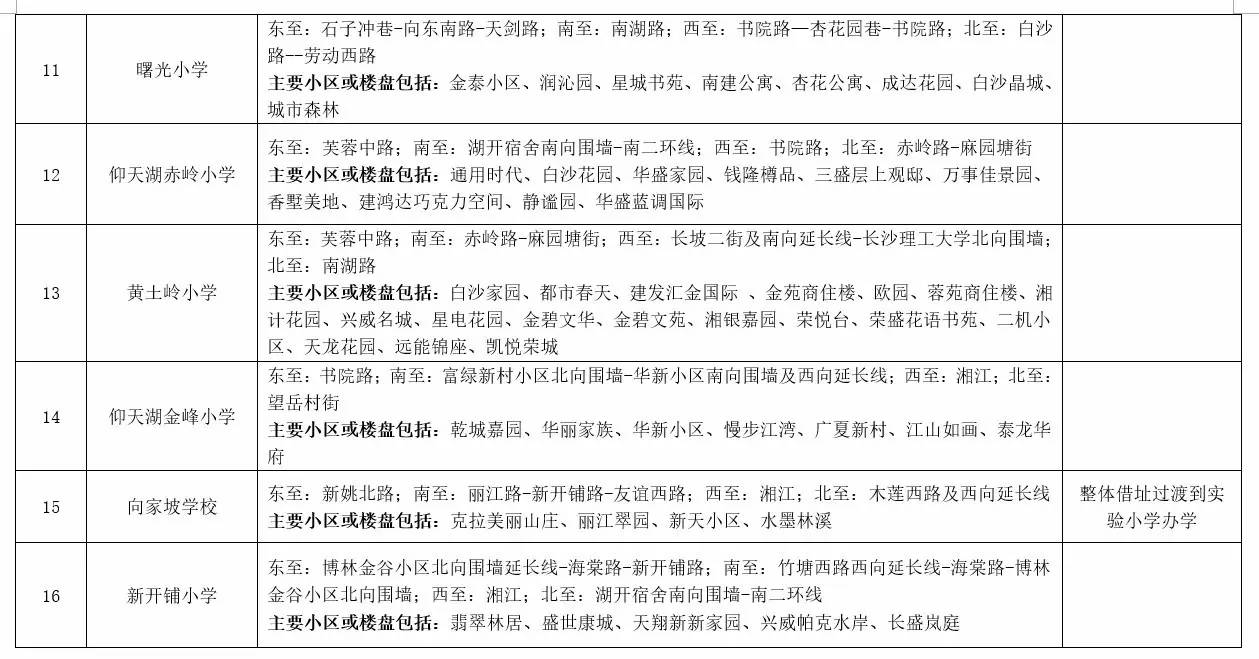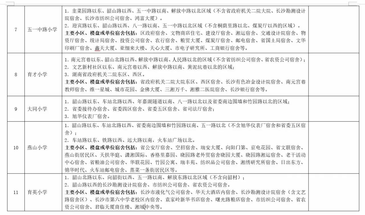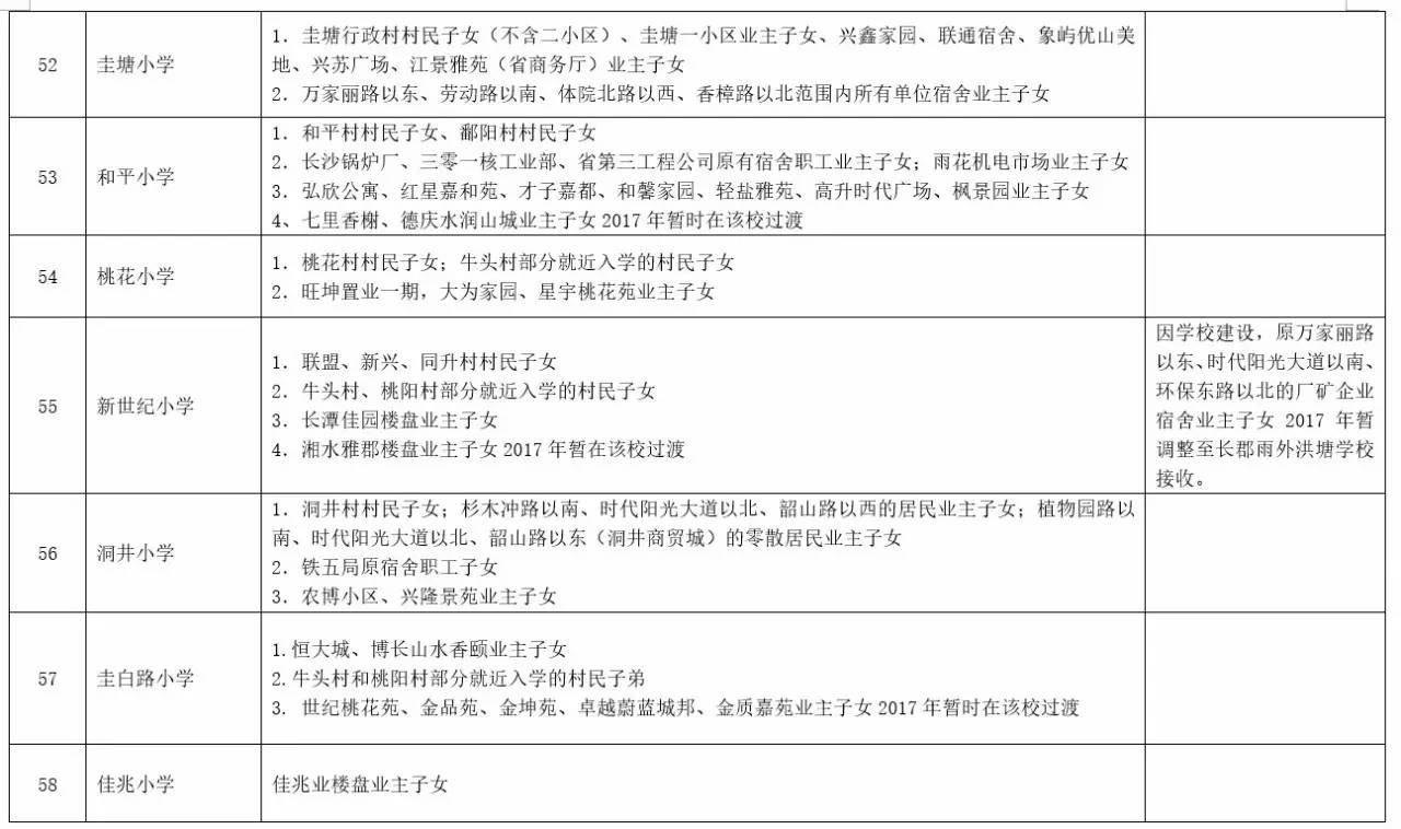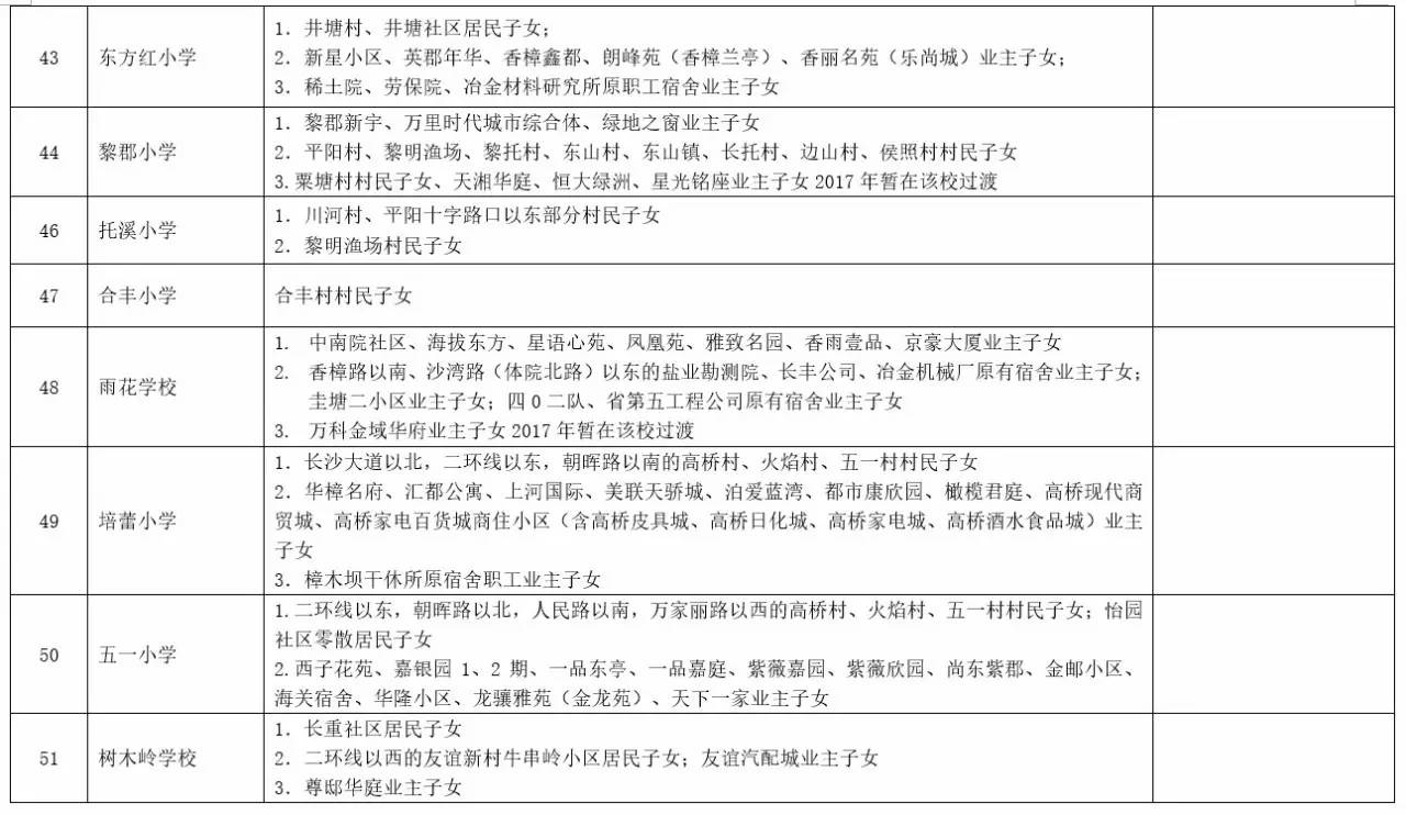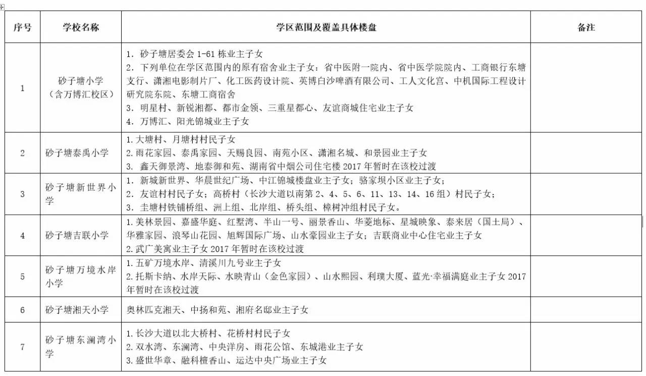 关于2017年长沙城区公办小学学区范围及覆盖具体楼盘信息的公告