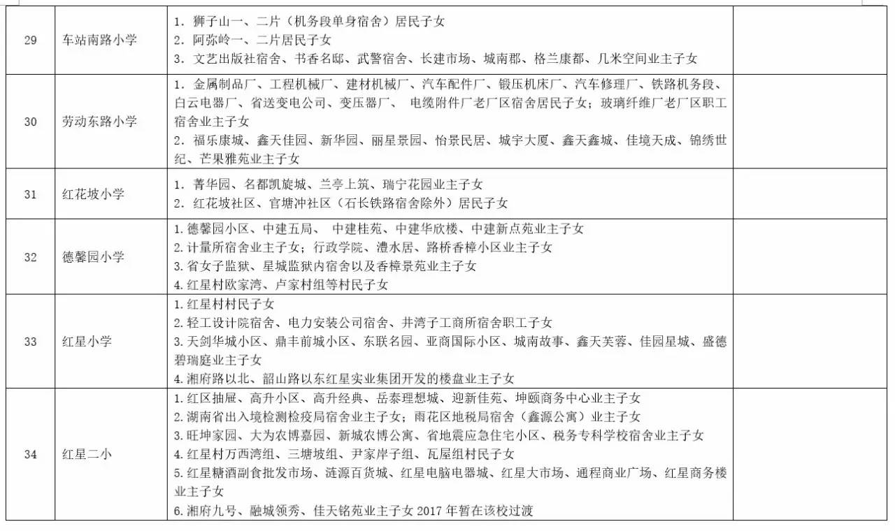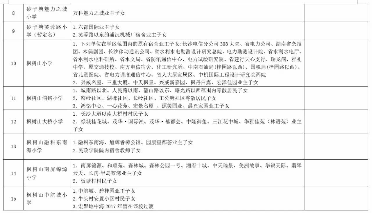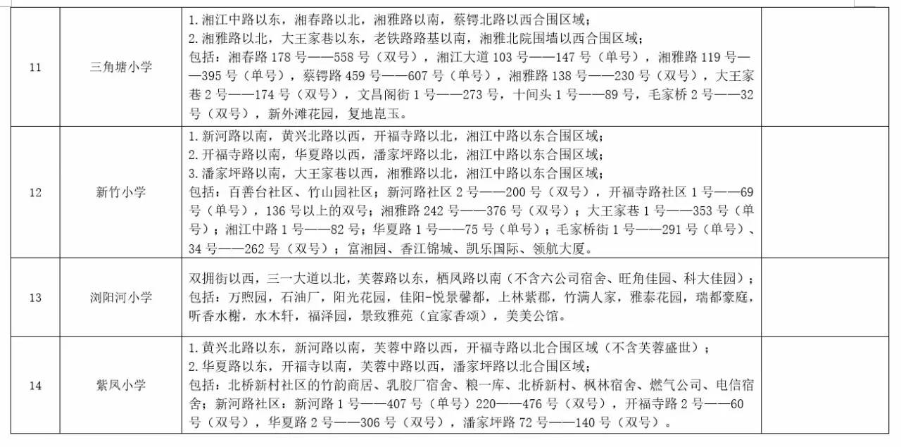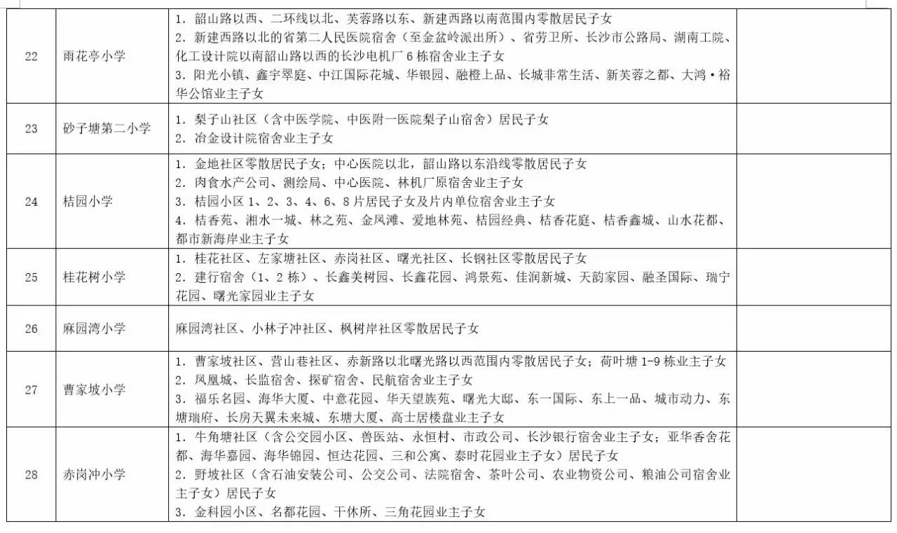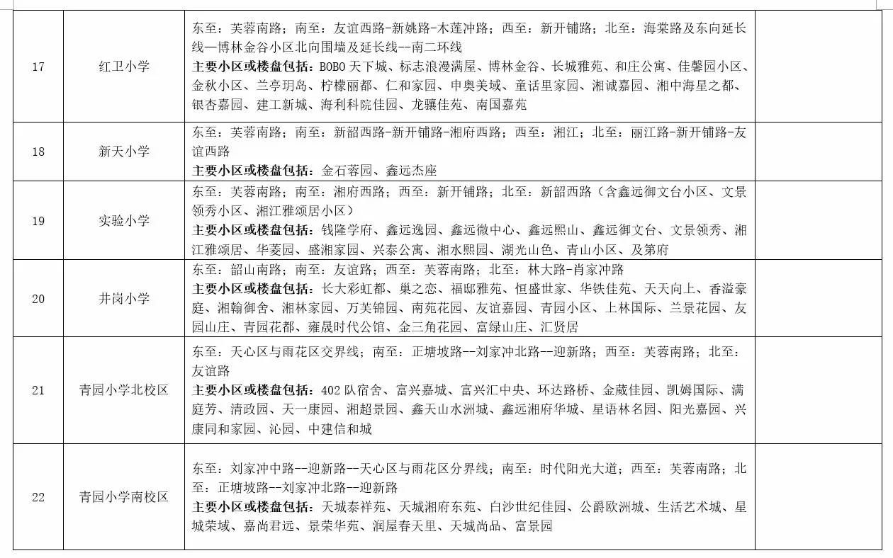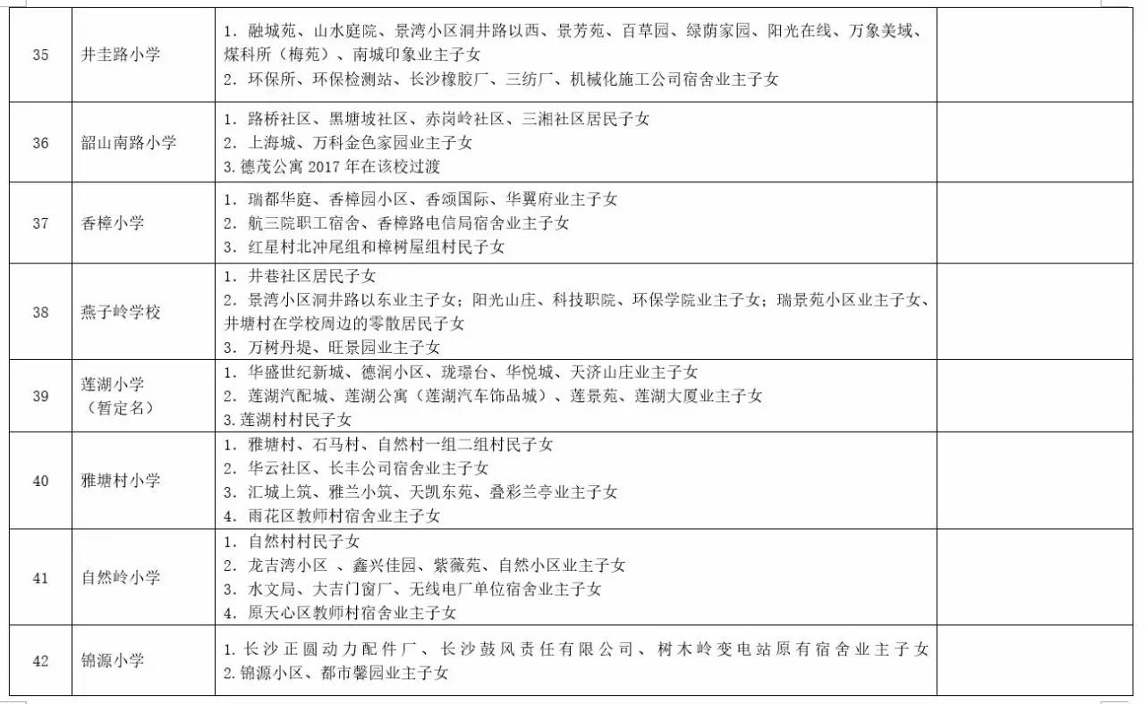 关于2017年长沙城区公办小学学区范围及覆盖具体楼盘信息的公告