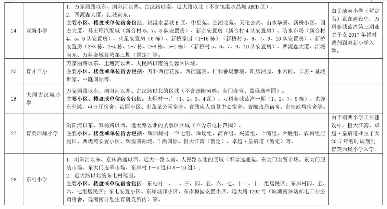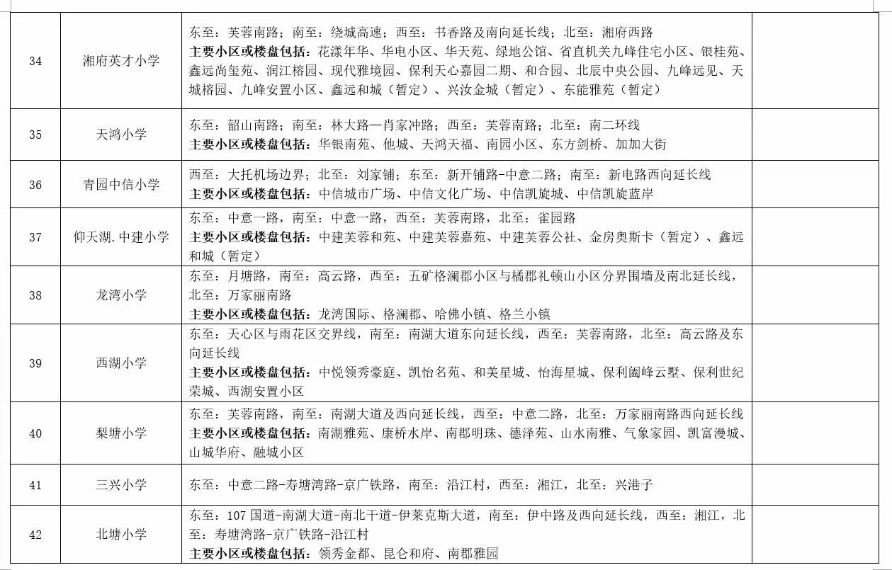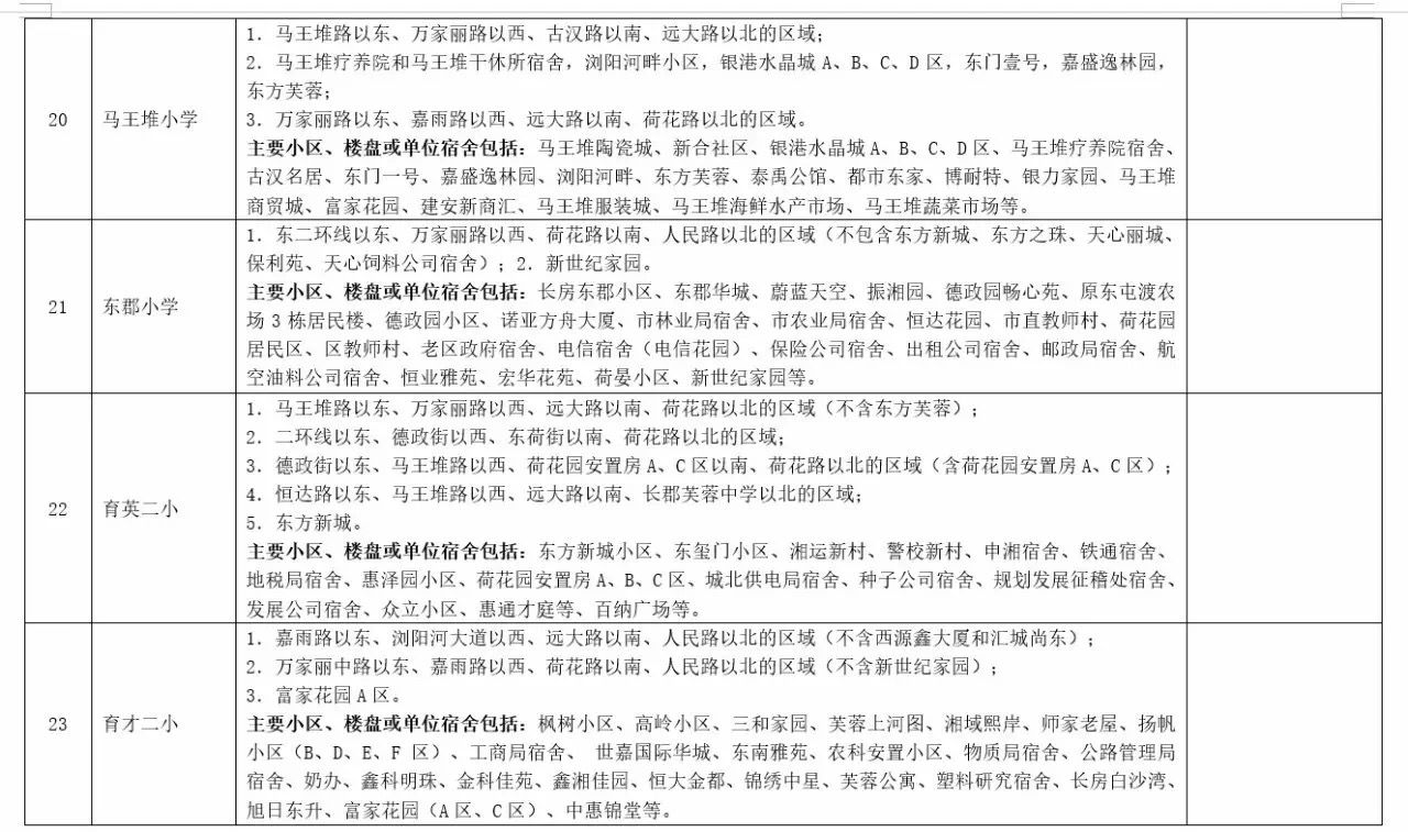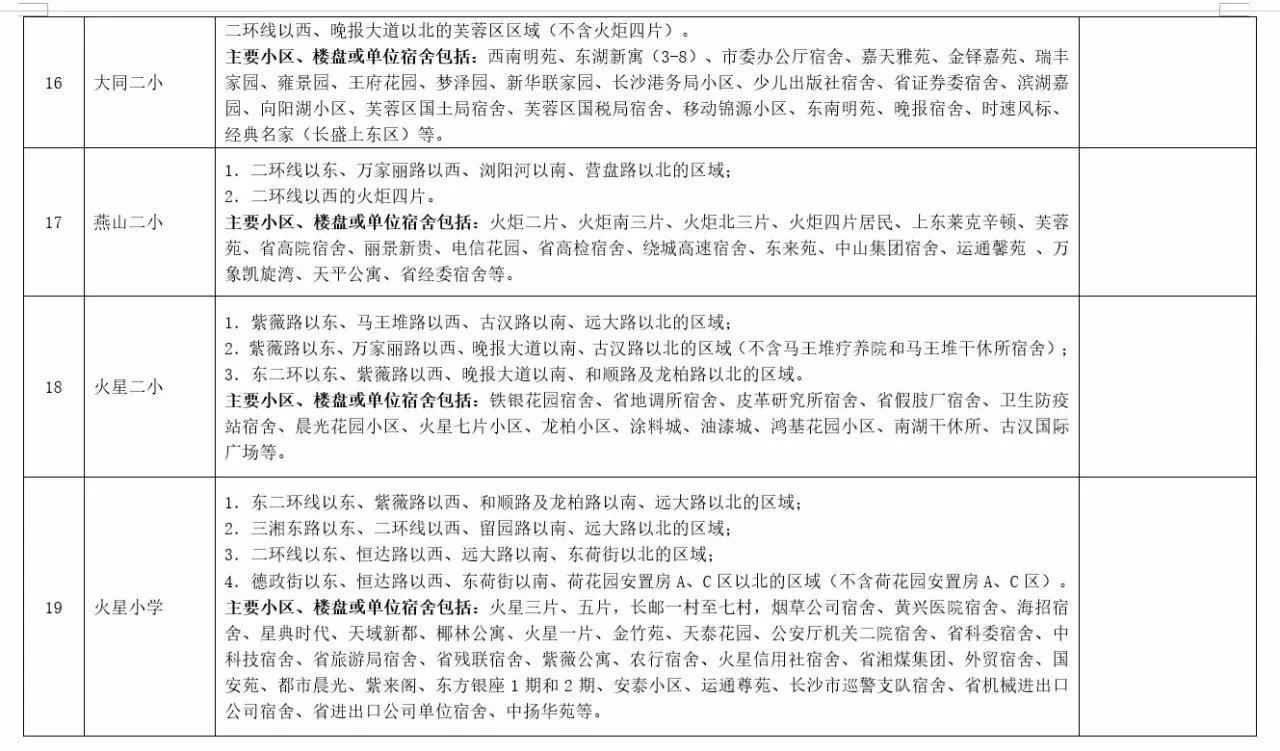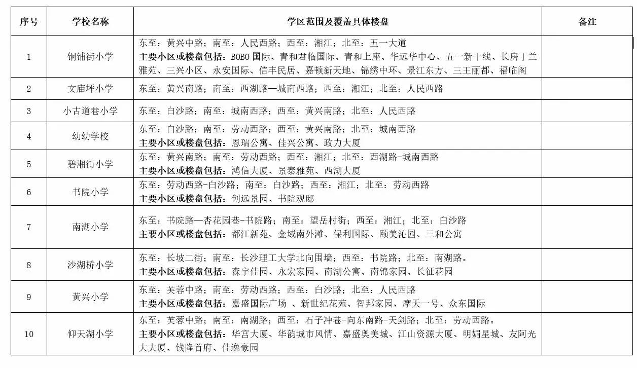 关于2017年长沙城区公办小学学区范围及覆盖具体楼盘信息的公告