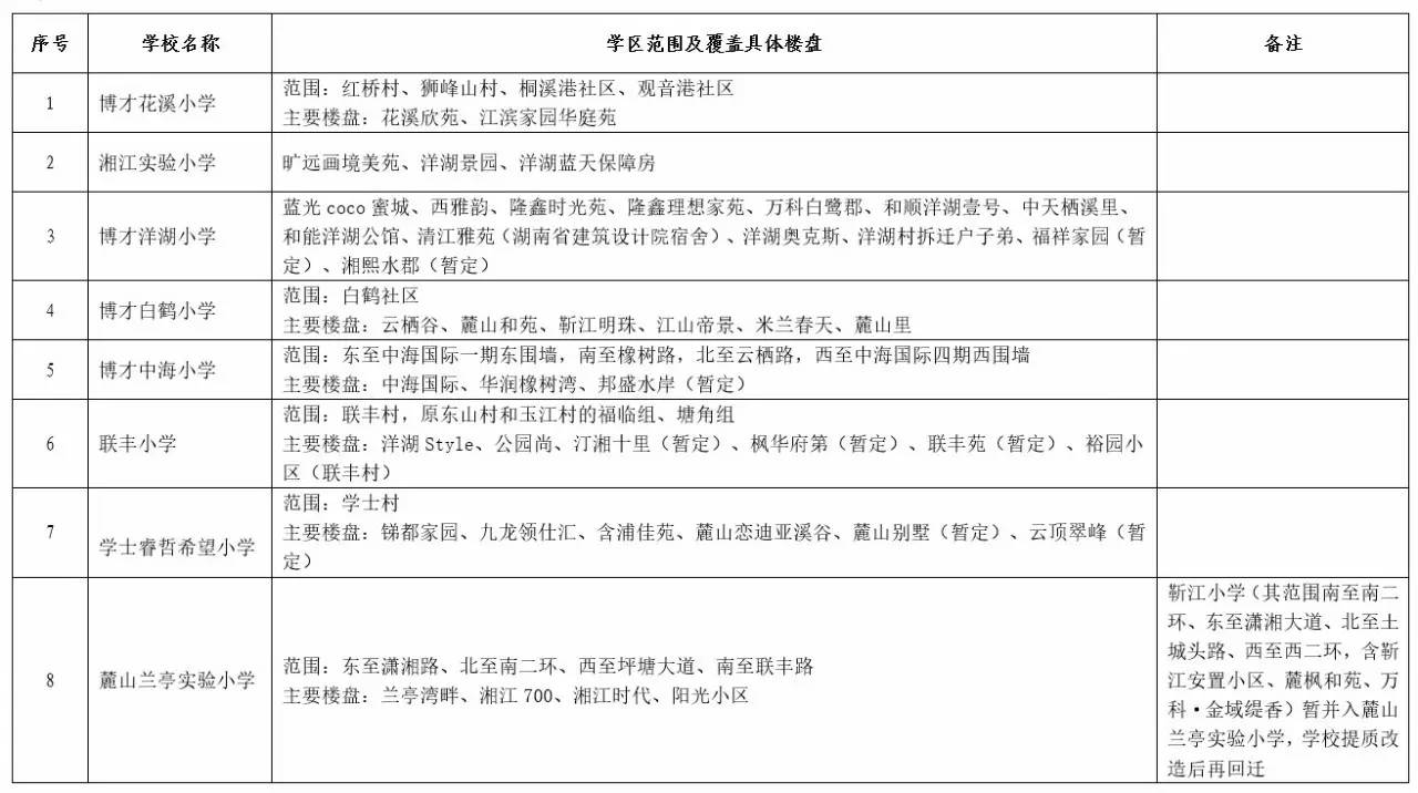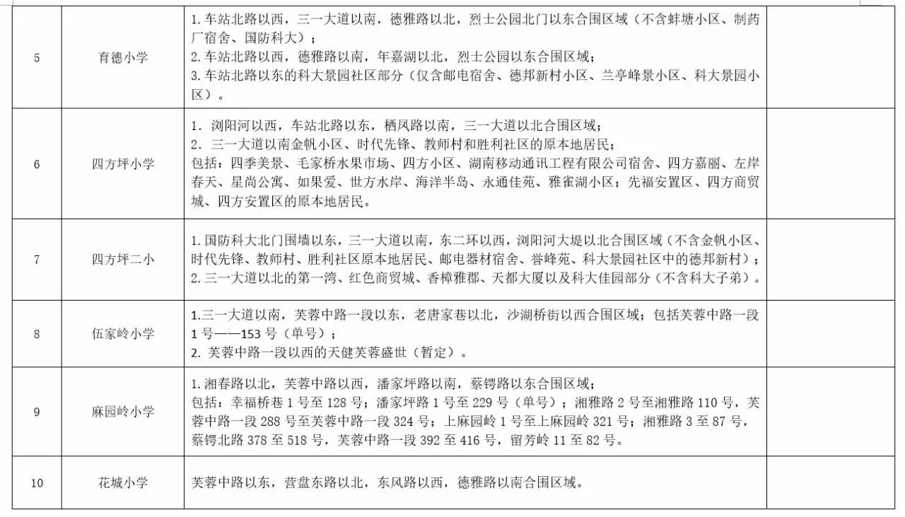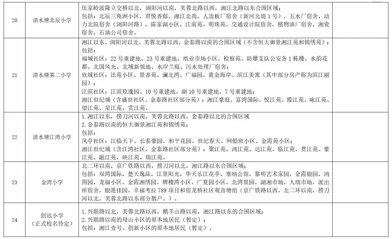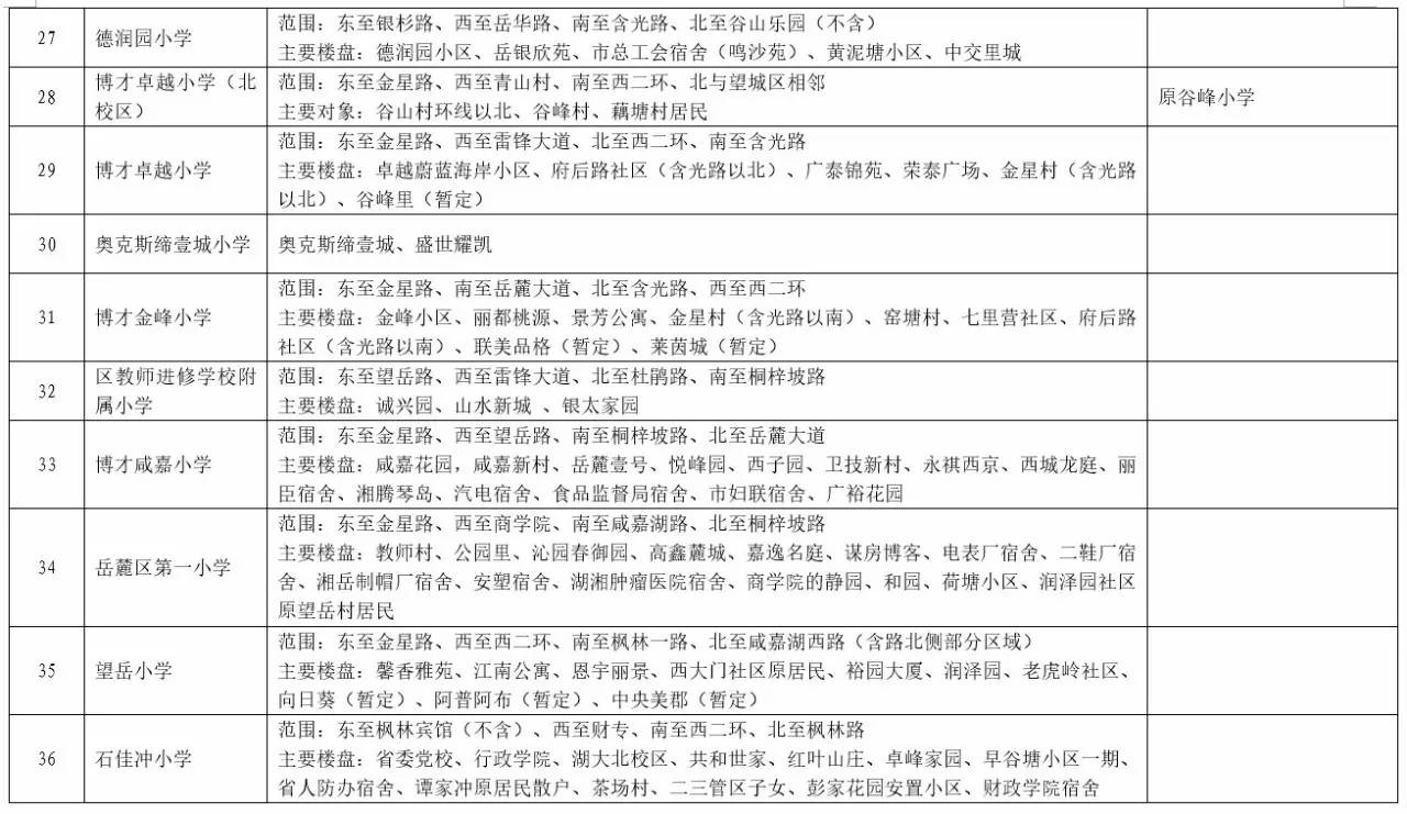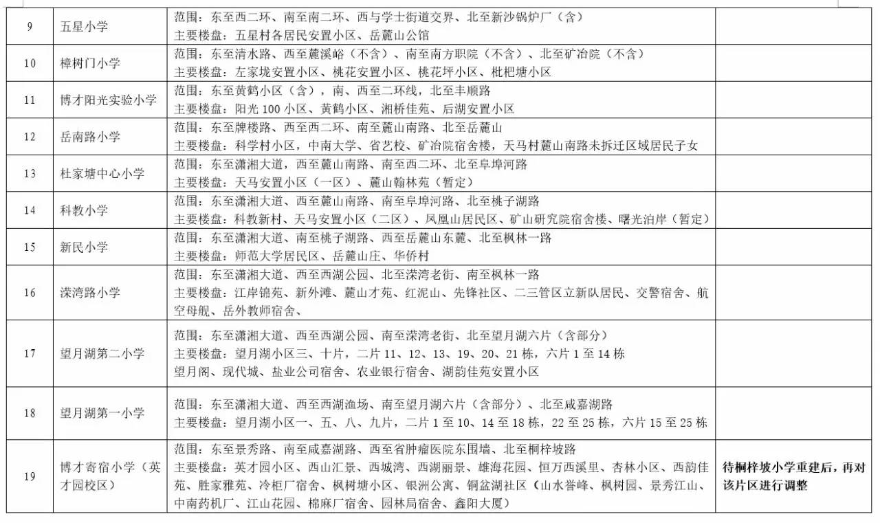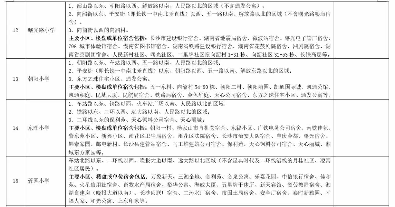 关于2017年长沙城区公办小学学区范围及覆盖具体楼盘信息的公告