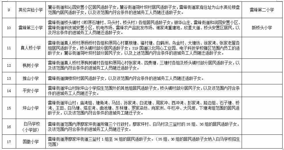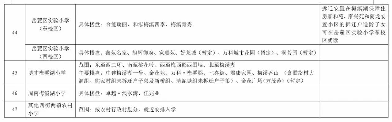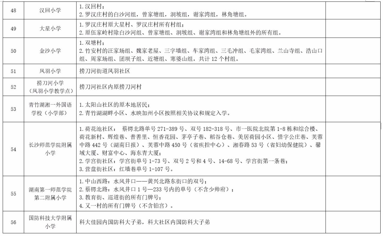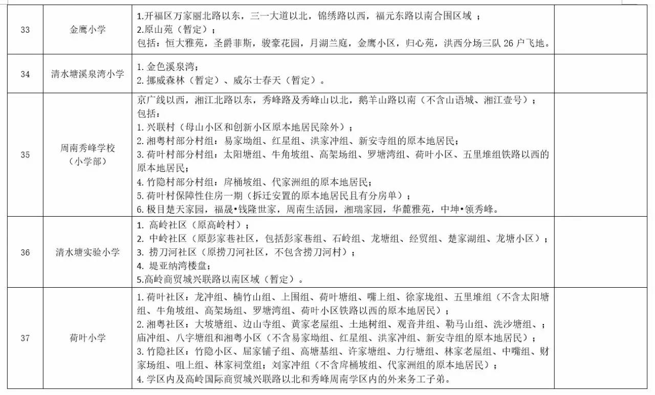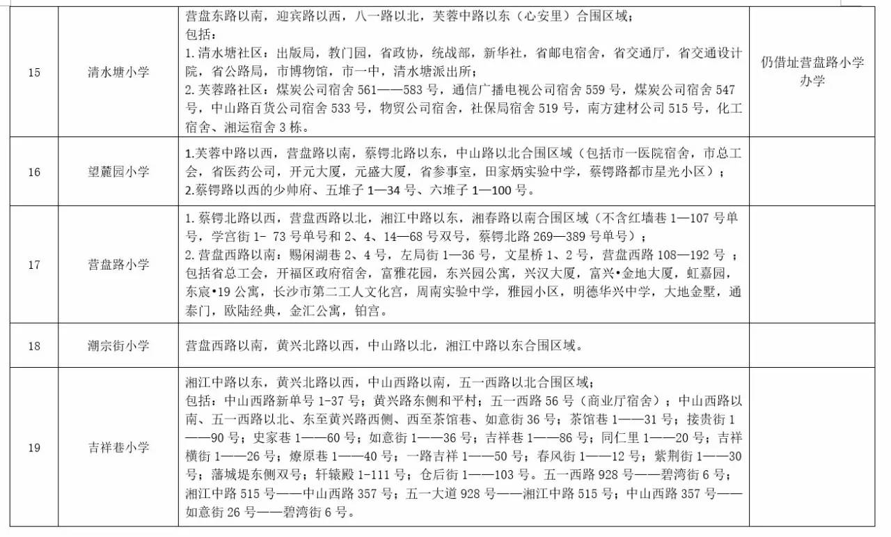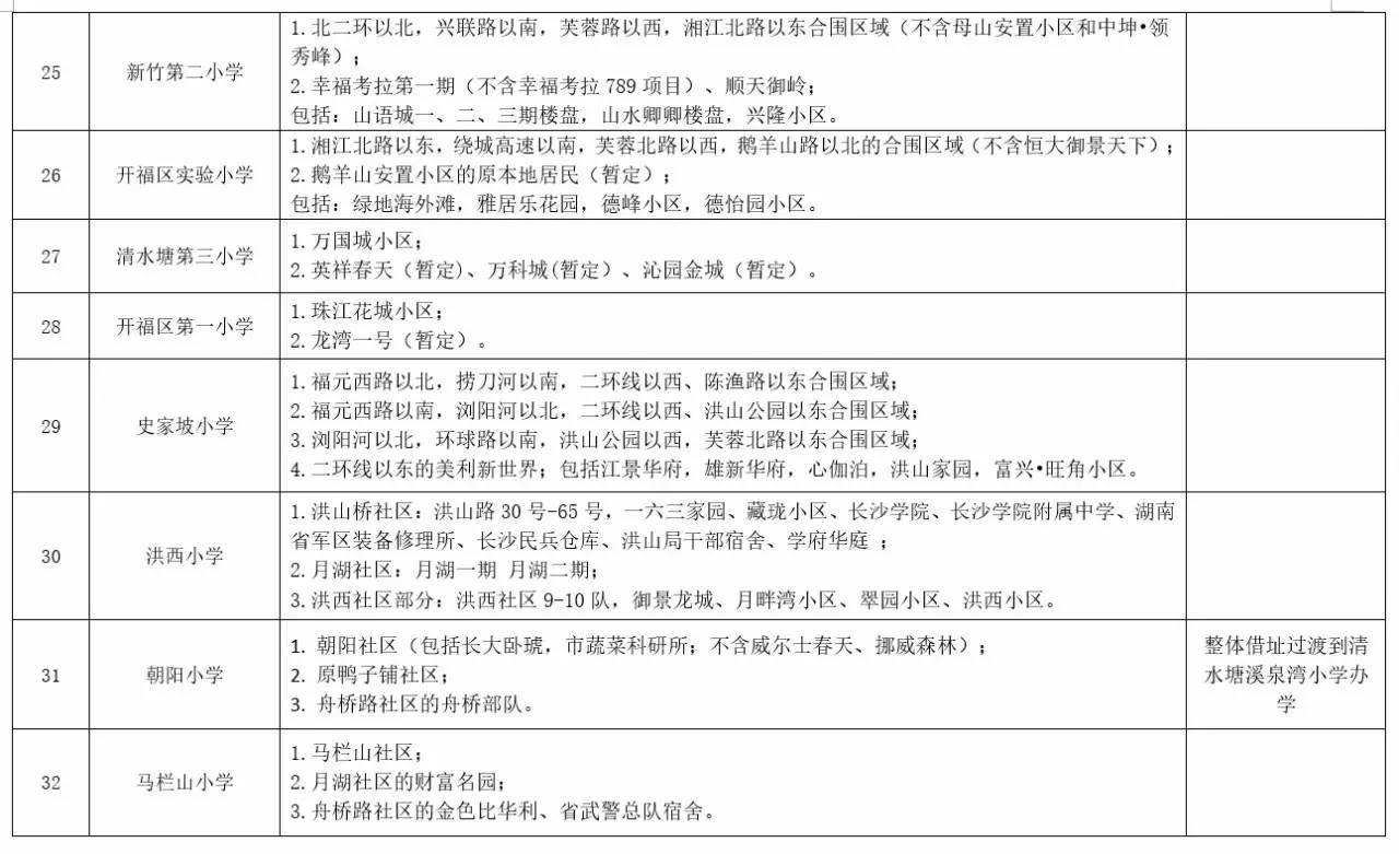 关于2017年长沙城区公办小学学区范围及覆盖具体楼盘信息的公告