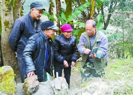 2016年12月11日,王新法(右一)与乡亲们一起查勘地形。(资料照片) 杨钰泽 摄