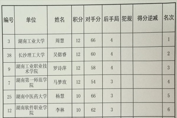 象棋选拔赛湖南赛区(大学生组)比赛参加的学校 摄影/向群