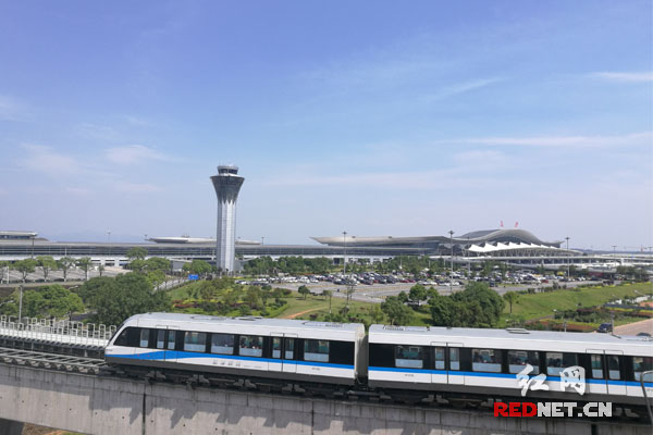 磁浮列车成了黄花机场前一道靓丽风景。