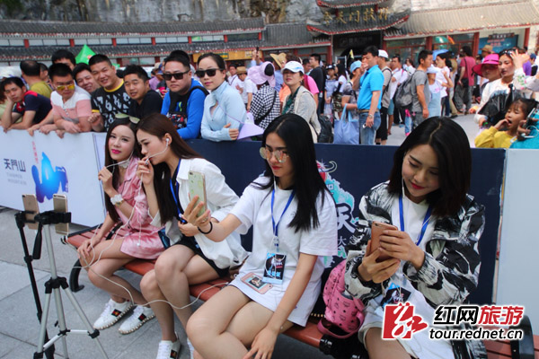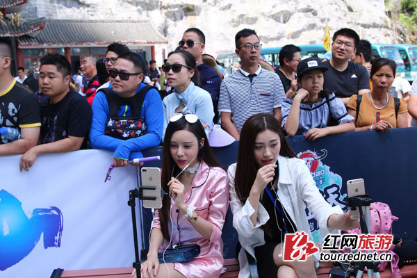 除了“主角”戏份,今天可算是加足了彩蛋。比赛现场,几位靓丽身影吸引了游客的目光,4位美女主播来到了天门山,用新颖的直播方式直击跑酷技巧赛现场,抢足了跑酷大神们的戏份。