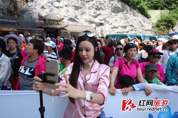 红网张家界5月29日讯(时刻新闻记者 戴科 通讯员 丁云娟)今日的天门山格外热闹,不仅有跑酷大神腾空灵动,上演精彩绝伦的跑酷视觉盛宴,还有群美女网红,嫣然一笑间,成了一道别样风景线。
