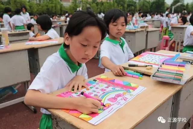 6月1日,是个美好的日子,欢乐的日子,特殊的日子。正源学校继昨天下午举行小学生1000人现场书法大赛之后,今天上午,又在同样地点上演了现场书法大赛的姊妹篇——小学生1000人现场绘画大赛,可谓花开并蒂,相映生辉,以此欢度六一儿童节。