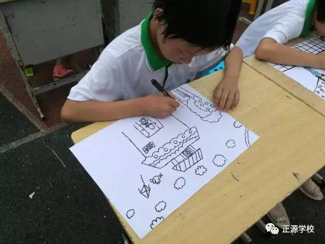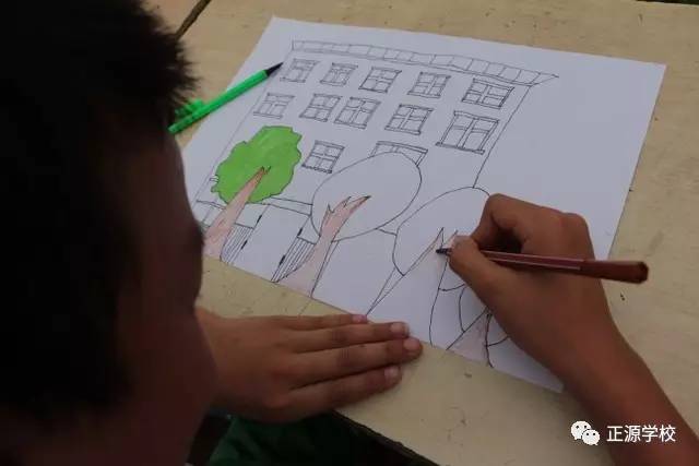 有画教学楼的,有画宿舍楼的,也有画食堂的,画运动场主席台的,还有画舞龙的,画远足的……不一而足,大有“精鹜八极,心游万仞”之势。当十一点钟大赛结束,同学们各自举起手中的画作时,琳琅满目,让人眼花缭乱。一张张充满自信的笑脸,让人眼前仿佛跃动起吴道子、郑板桥、齐白石、徐悲鸿、达.芬奇、毕加索……的身影。