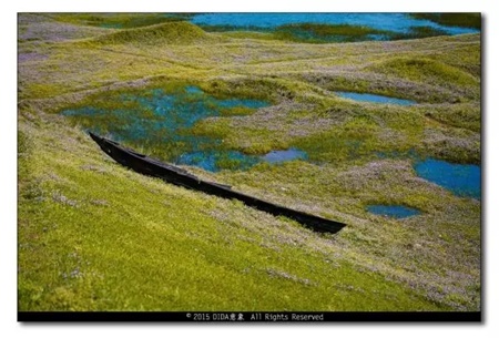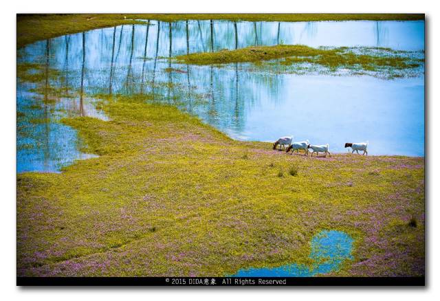 而在滩涂上一片片的草籽花,翠绿与紫红并艳,