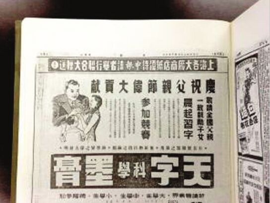 父亲节墨膏广告,呼吁全国父亲鼓励子女晨起习字。