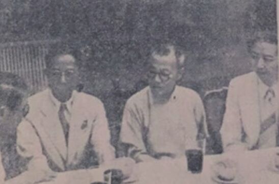 父亲节推进委员会委员梅兰芳(右一)等人,听取会务报告。
