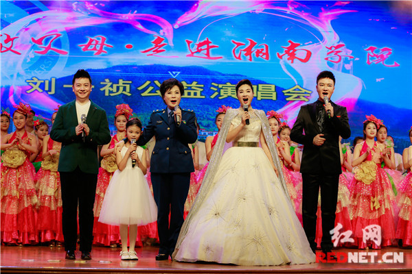 红网郴州站6月18日讯(记者 朱丽萍)6月17日,“孝敬父母·走进湘南学院”刘一祯公益演唱会在湘南学院体育馆举行。中国人民解放军空军政治部文工团郴籍青年歌唱家刘一祯携手胡文阁、铁金、汤非、周林漫、谢胜蓝等助阵嘉宾倾情演唱,共唱中华孝道和谐之声,践行孝老敬亲的中华美德。现场数千名观众观看演出。