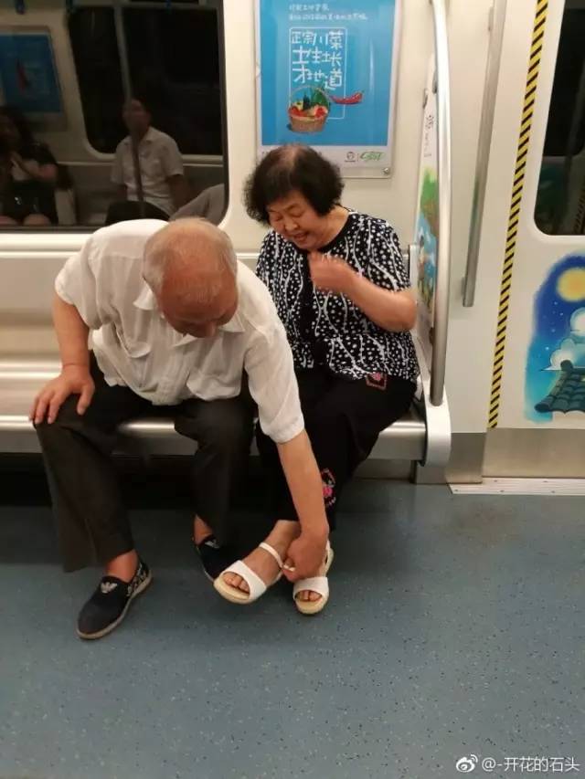 前天下午,网友@-开花的石头 在成都地铁拍到暖心一幕: