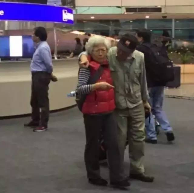 凌晨在台北的机场,一位老奶奶在大厅内转来转去似乎在找什么人,突然一个老爷爷将她搂入怀中,嘴里还念叨着:“老太婆,不是让你站在原地等我吗?”