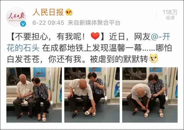 原标题:他在地铁上的一个动作,暖哭全国网友!这就是爱情的模样吧!
