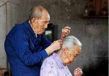 96岁的王力金老爷爷和84岁的黄邵珍奶奶,在1951年相识后结婚,相差12岁的他们相伴了64年,王爷爷的所有衣服都是黄奶奶亲手缝制的,有一次王爷爷开玩笑称,“你给我做了这么多衣服,一年穿一件,说不定穿不完我就走咯!”