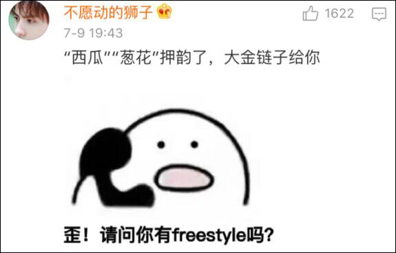 之前给大家科普过的喊麦包会技能,他也瞬间get,而且是喊麦也要押韵系列。