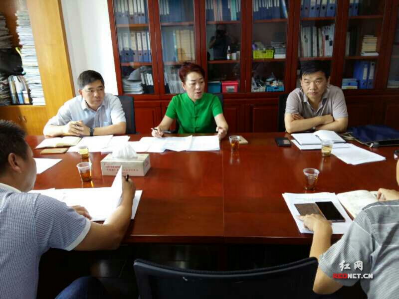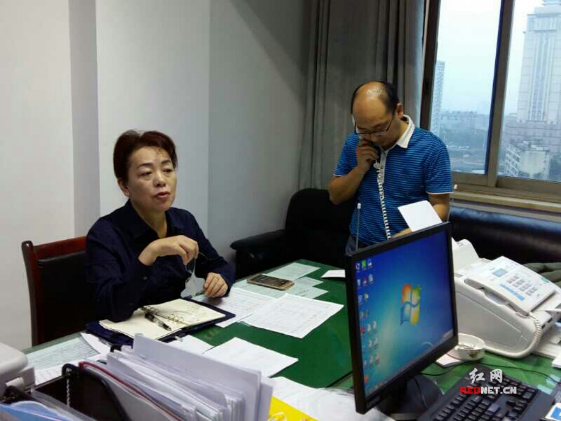 湖南省民政厅厅长唐白玉(中)、副厅长邓磊(右)与厅救灾处的同志在会商灾情。