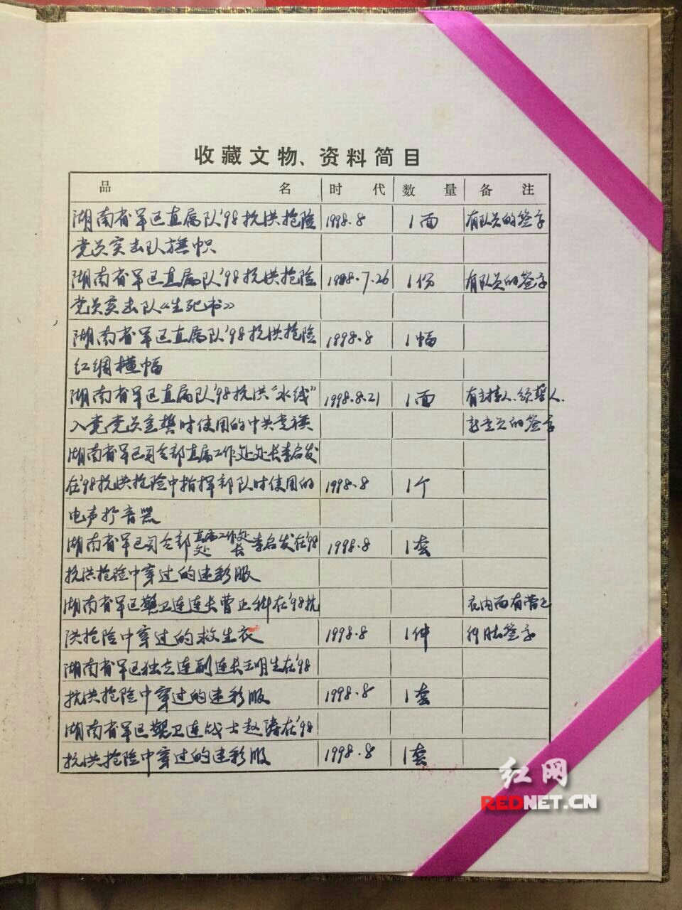 1998年,湖南省博物馆收藏的抗洪相关实物证书。杨峥嵘 提供