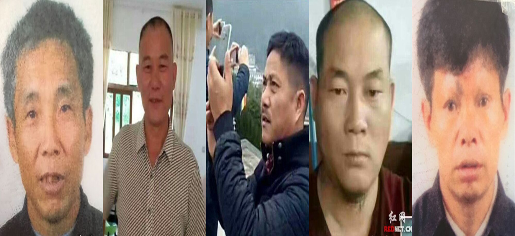 从左至右依次为:严国生、何望林、姜成良、伍华荣、李国军(其他几名遇难者已找不到生前生活照)