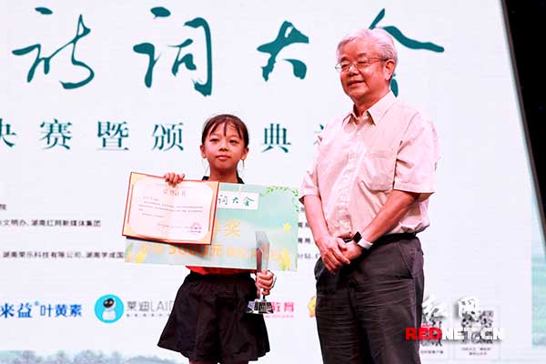 “青春诗词大会考验的是选手的诗词储备量、记忆力、反应能力。这些小孩子的表现很不错,没想到小小年纪的他们能有如此深厚的诗词涵养。”红网名誉董事长、湖南省政府文史研究馆馆员、湖南师范大学历史文化学院教授郑佳明观战后为冠军卿熙容颁奖时说。