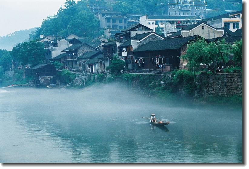 无论你从任何一个视角走入凤凰,从峻拔耸立的古城门,从布满苔藓的古城墙,从别具一格的虹桥,从某栋匠心独运的吊脚楼,从一条幽深逼仄的古巷,抑或从沱江边一条绿草茵茵的小径……你都会直观地察觉到这座古城是圆形的,你都会惊奇地触摸到古城兴奋的心律:一步一幅图景,一步一处古迹,一步一个传说,四处飘逸的清音幽韵,迎面扑来的沉博绝丽,俯拾即是的古色古意。一个古典又精致、朴实又浪漫、娴静又勃然的凤凰古城会使你自然而然地融入其中,又会让你真切地感受到古典、朴实、宁静背后的坎坷、跌宕、湍激。