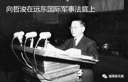 向哲浚(1892—1987),宁乡县双江口向家塅人。1910年至1917年就读于清华大学预备班。后留学美国耶鲁大学,精通英语。曾任北京、交通、法政、东吴、中央等大学教授、司法部秘书。出任远东国际军事法庭中国检察官之前为上海高等法院首席检察官。远东国际大审判结束后,向哲浚被任命为中国最高检察官,但没有到任。中华人民共和国成立后任上海财经学院教授等。