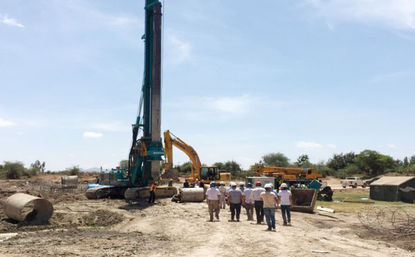 目前山河智能的两台旋挖钻机和挖机正在Suswa地区跨B3公路特大桥项目施工,整机使用性能优越,钻孔效率高,特别是面对施工工况不太平整的路面时仍能保证绝对的稳定性。