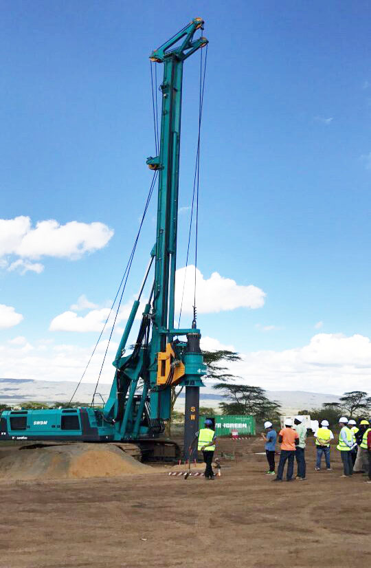 不过有了之前在蒙内铁路桩基础处理的丰富经验,中国的工程师们这次可以从容应对。一期五标设计灌注桩共计400余根,单桩深度35——65余米,桩孔深度共计20000余米,负责桩基础施工的Eastridge engineering&construction公司总经理陈总和山河智能合作有十余年了,他在中标的当天就毫不犹豫地从肯尼亚打款5万美金的定金到山河智能账户订购一台型号为SWDM32R的旋挖钻机。当时双方还未签订合同,价格和配置都还没有谈。陈总告知山河智能负责东非市场的同事,他之所以有这样的魄力,是因为他相信山河智能的品牌,在他心目中,山河智能人好设备好!