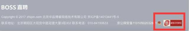 目前,BOSS直聘网下方的“诚信示范单位”标识已无法打开。