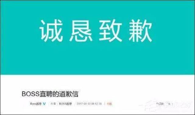 8月10日BOSS直聘发出公开道歉信,称坚决拥护北京市网信办和天津市网信办对BOSS直聘开展的依法联合约谈,坚决落实整改要求。