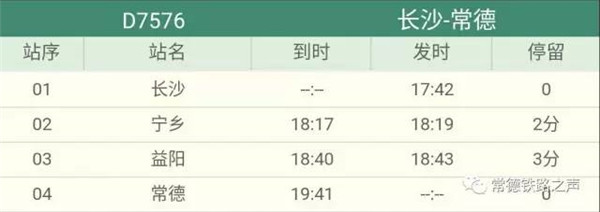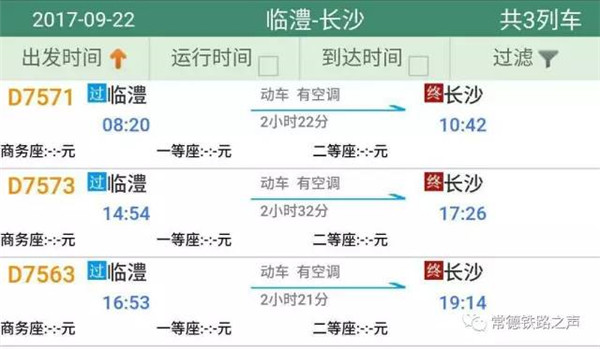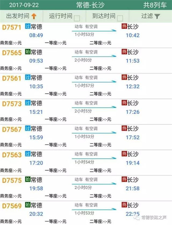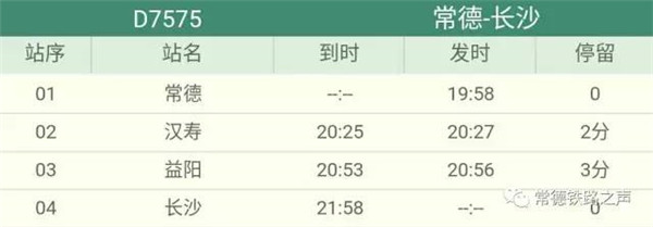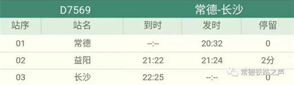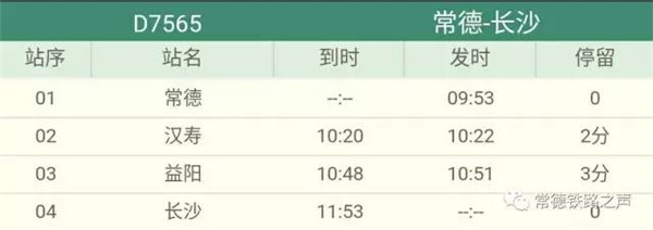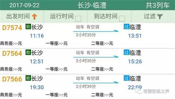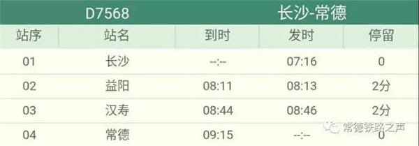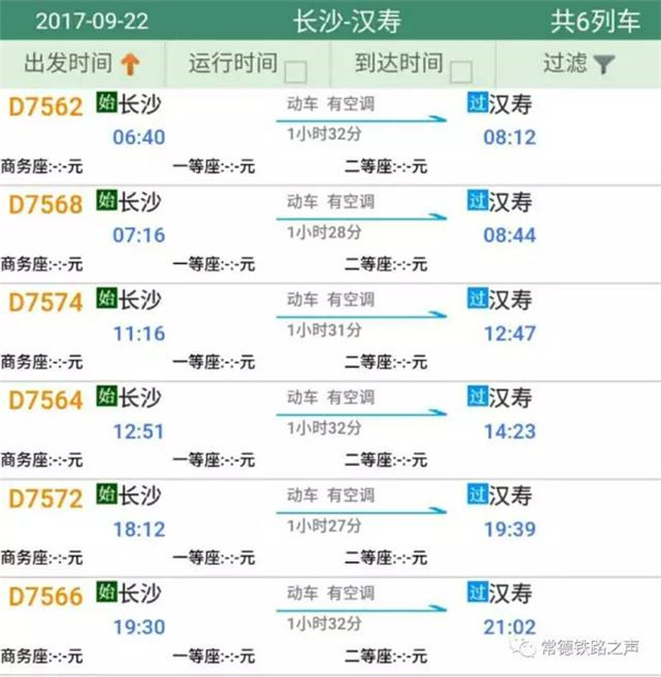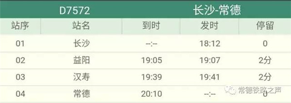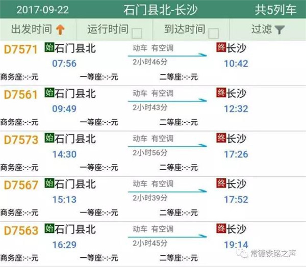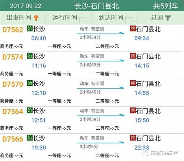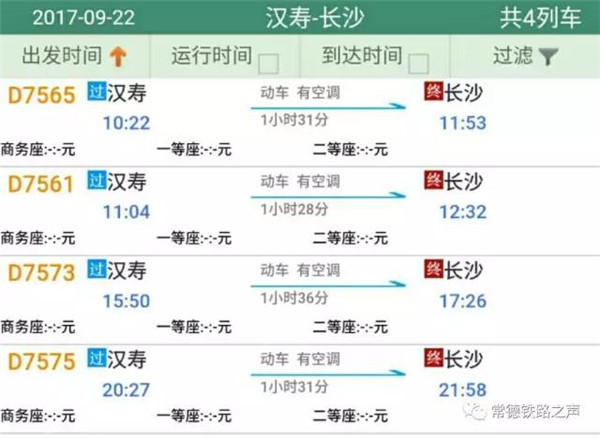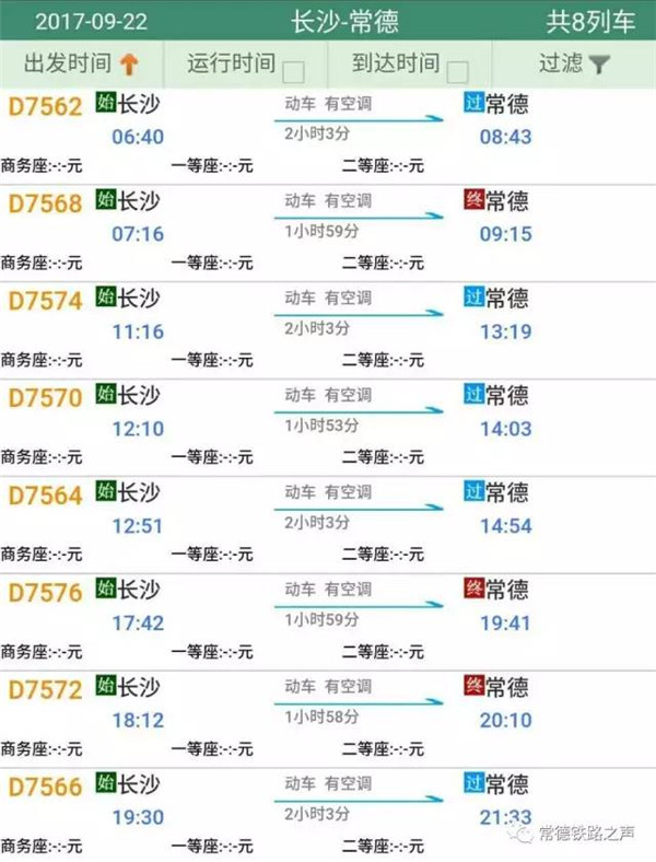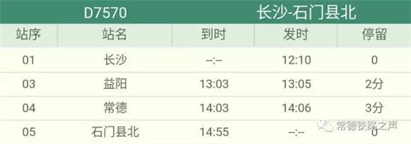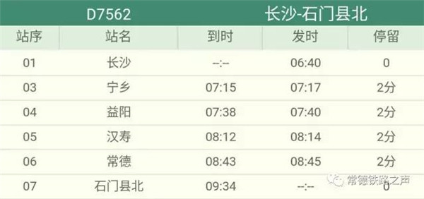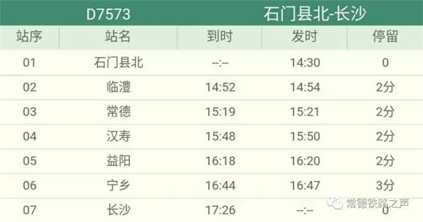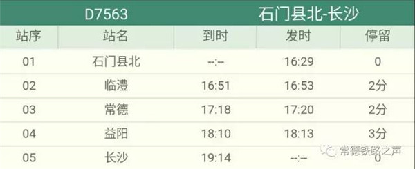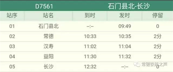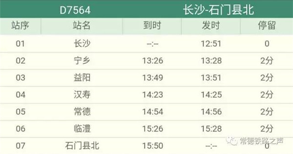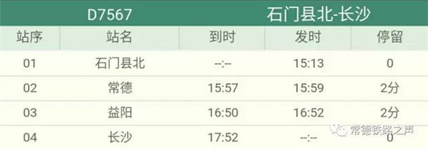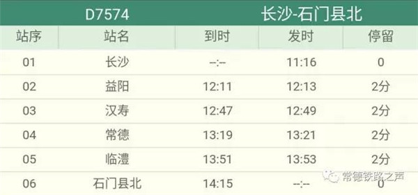 长沙往常德、石门方向动车详细时刻表(按发车时间排序)