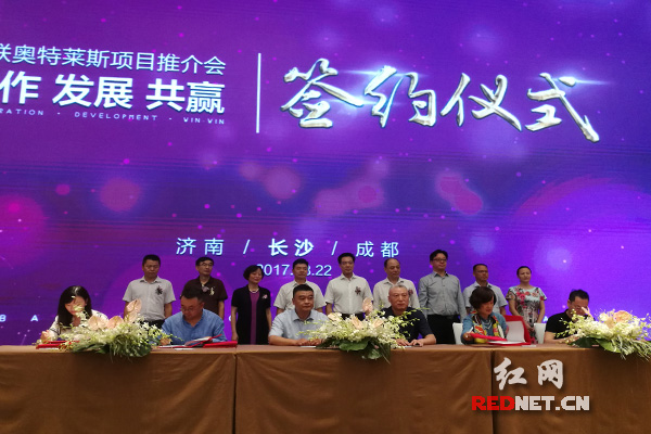 红网时刻长沙8月22日讯(记者 邓正可)8月22日,位于长沙临空经济示范区内的百联奥特莱斯项目国际名品招商会在长沙召开。Ferrgramo,HUGO BOSS,Michael Kors,MaxMara,CANALI,MOSCHINO,DKNY等50多个国际知名品牌商代表参加,其中ARMANI,COACH,Adidas,CERRUTI 1881,GAP等12家国际品牌商现场签约入驻,奥特莱斯广场力争2018年国庆期间开业。
