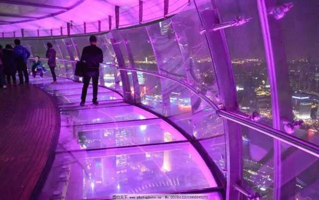 去上海东方明珠是必须要去的,一定要坐电梯到东方明珠塔顶的玻璃栈道上走一走,很刺激。