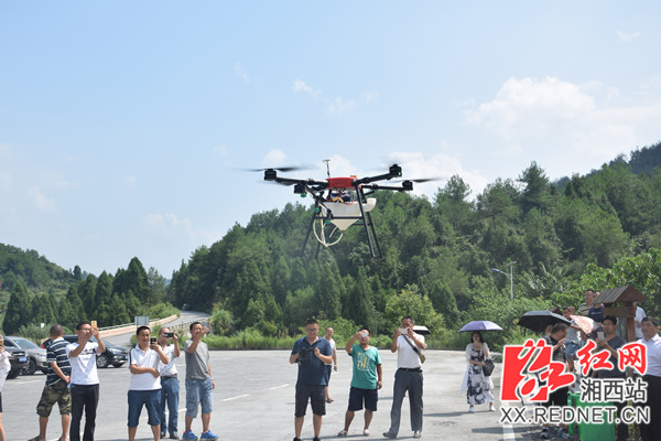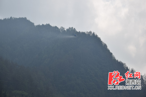 红网湘西站8月27日讯(记者 周楚怡 通讯员 王宗永)8月27日上午,随着指挥员一声“起飞”,一架载有350公斤生物农药的直升机升上天空,这是湘西州首次使用机械大面积撒药防治马尾松毛虫。全州8县市林业局分管森防工作的负责人到古丈县,共同观摩直升机和无人机撒药防治马尾松毛虫现场。