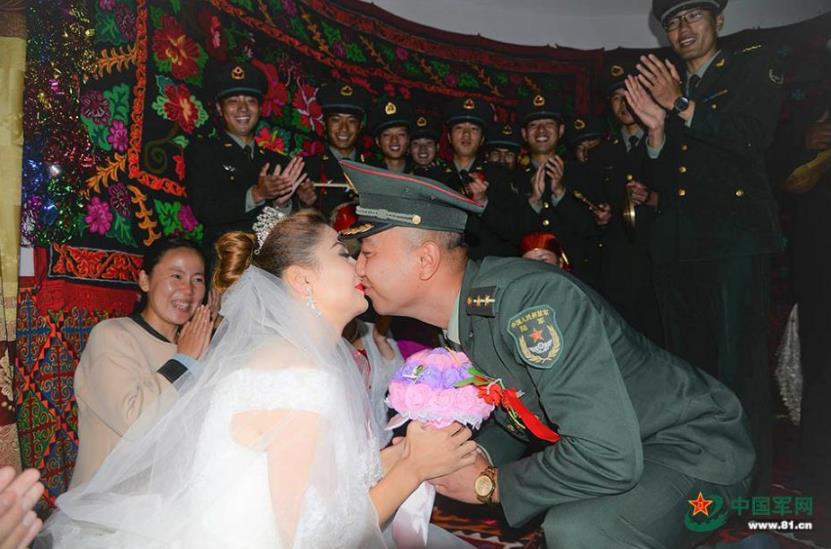 轻盈的舞步跳起来,美妙的库木孜弹起来,欢快的歌曲唱起来。8月25日,位于祖国最西端的新疆克孜勒苏军分区迈丹边防连热闹非凡,维吾尔族排长麦尔旦和未婚妻阿依夏在全连官兵和驻地牧民群众的共同见证下走进了婚姻的殿堂。图为同走戍边路,体会边防军人的艰辛与不易。杜麒麟 刘慎 摄影报道 图片来源:中国军网