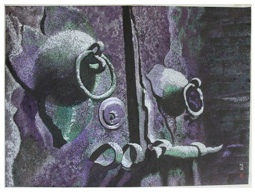 在画作中,她将“门”分割空间、标志领域、划分等级、蕴涵风水、表达身份的功能延伸与伴随人类文明的进程而逐步丰富和深化的标本价值体现的淋漓尽致。这些画作多用叠晕画法,使颜色由浅到深或由深到浅,变化柔和没有生硬感。同时,画作中韵律节奏极美的线条,逸趣横生,意境悠长,与美的构思相得益彰,“既有古意又不呆板”。